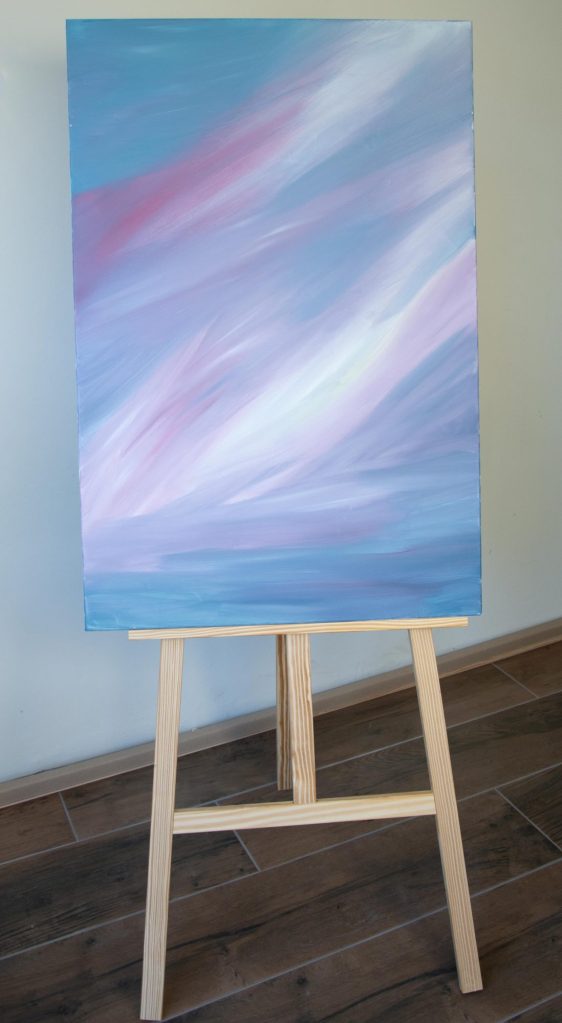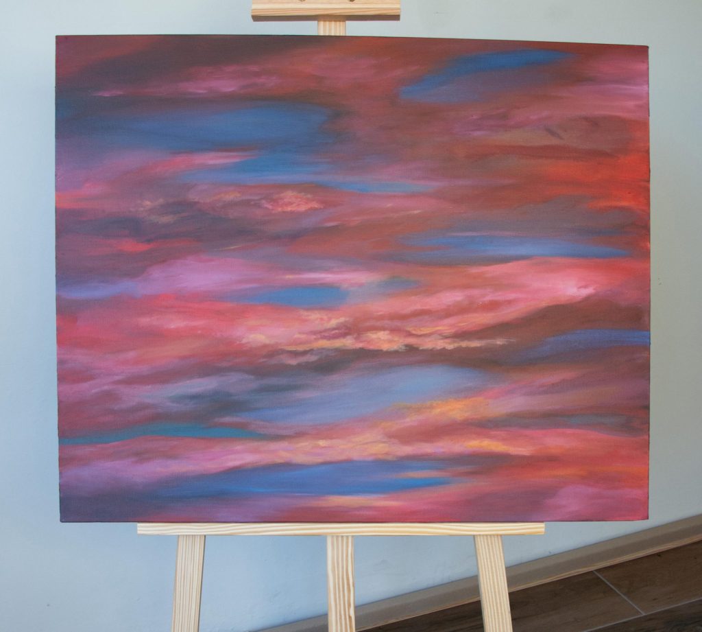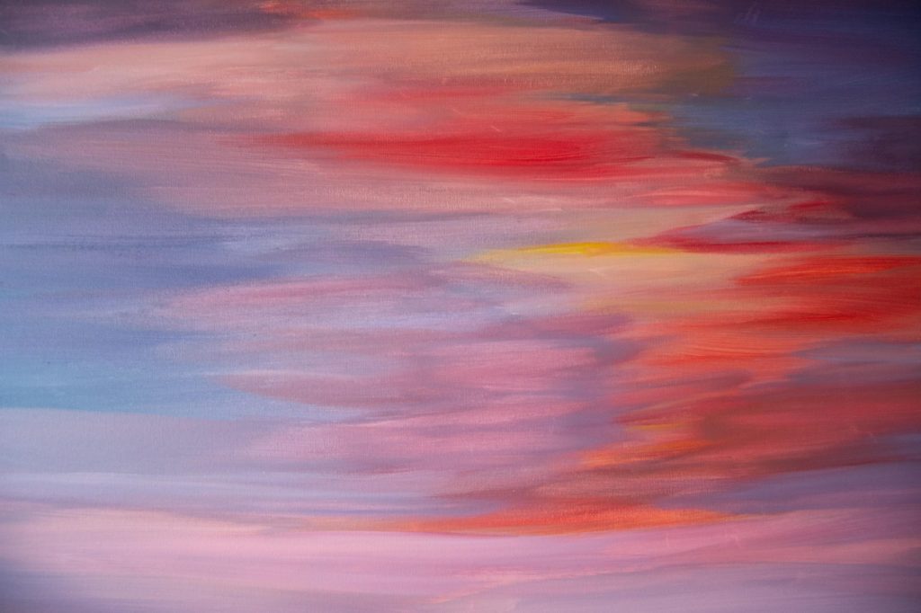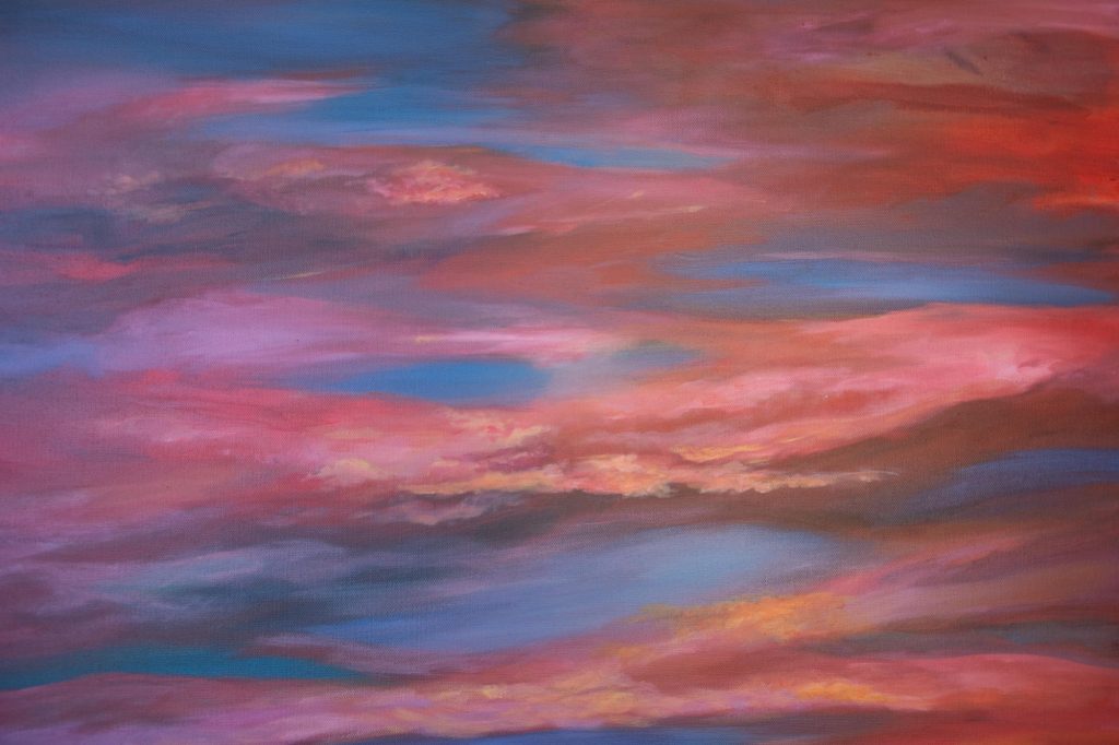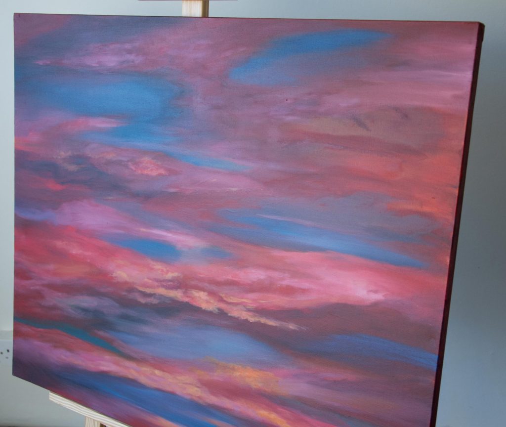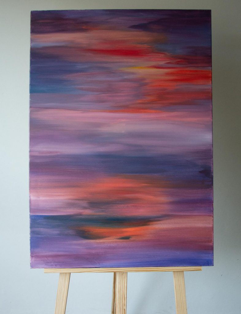 May Evening was a particularly dramatic night in 2024. The changing of the seasons always brings spectacular skies and last May was no exception. The top half is the thick waves of colours, on layered clouds and mist and the bottom half is a gentler reflection that meets the horizon.